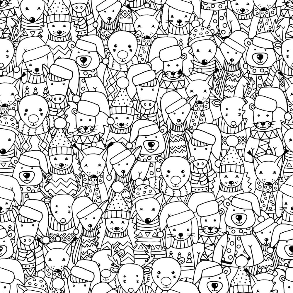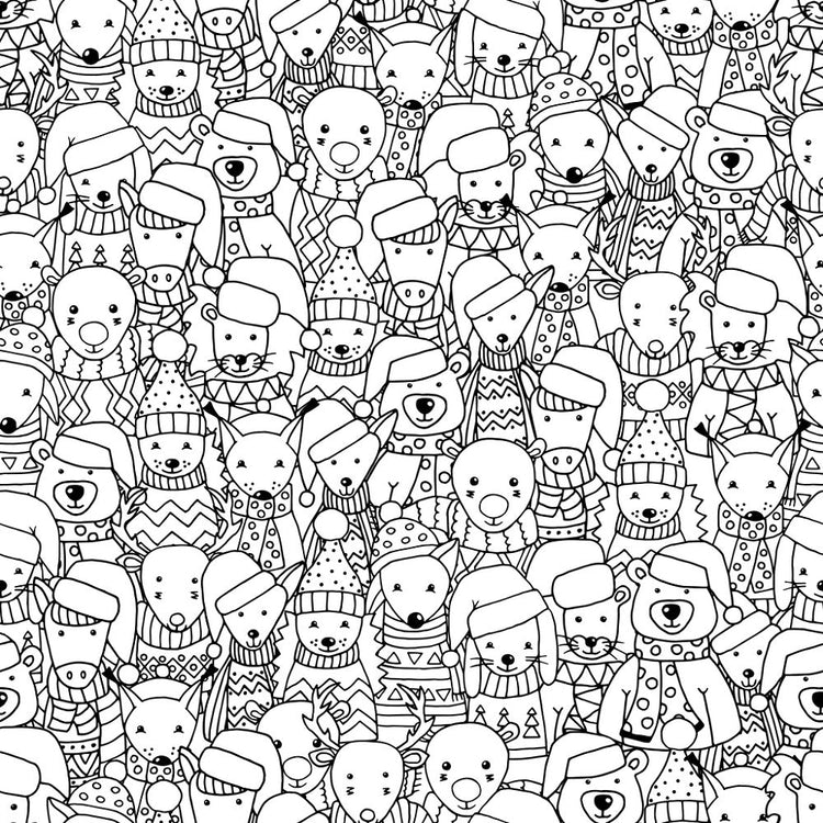Packed Cartoon Scandinavian Animals Fabric - Black/White Details