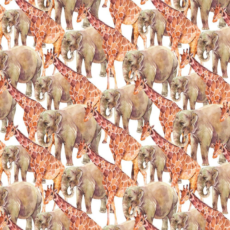 The Packed Elephants & Giraffes Fabric is a part of the Animal Fabric Collection printed by Sew Creative Fabrics. Digitally Printed on 100% cotton.