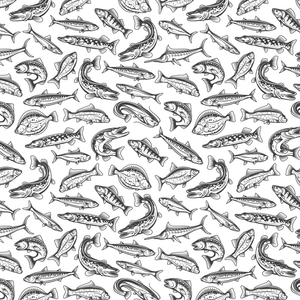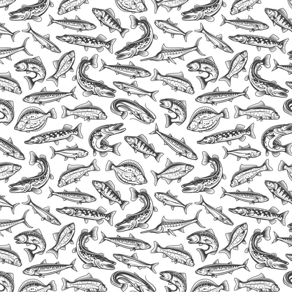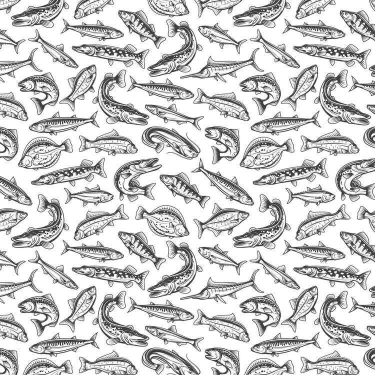 Packed Fresh & Salt Water Fish Fabric - Black Details