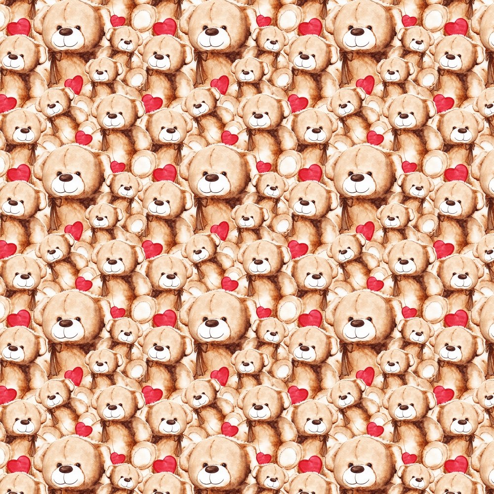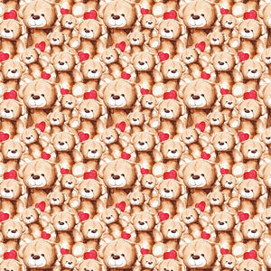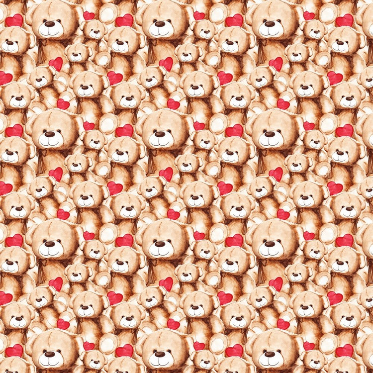 The Packed Lovely Teddy Bear & Hearts Fabric is a part of the Lovely Teddy Bear Fabric Collection printed by Sew Creative Fabrics. Digitally Printed on 100% cotton and measures 42-43" wide.