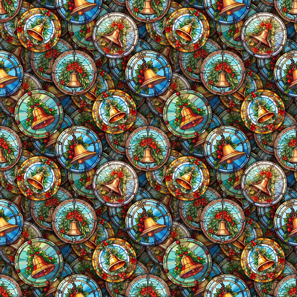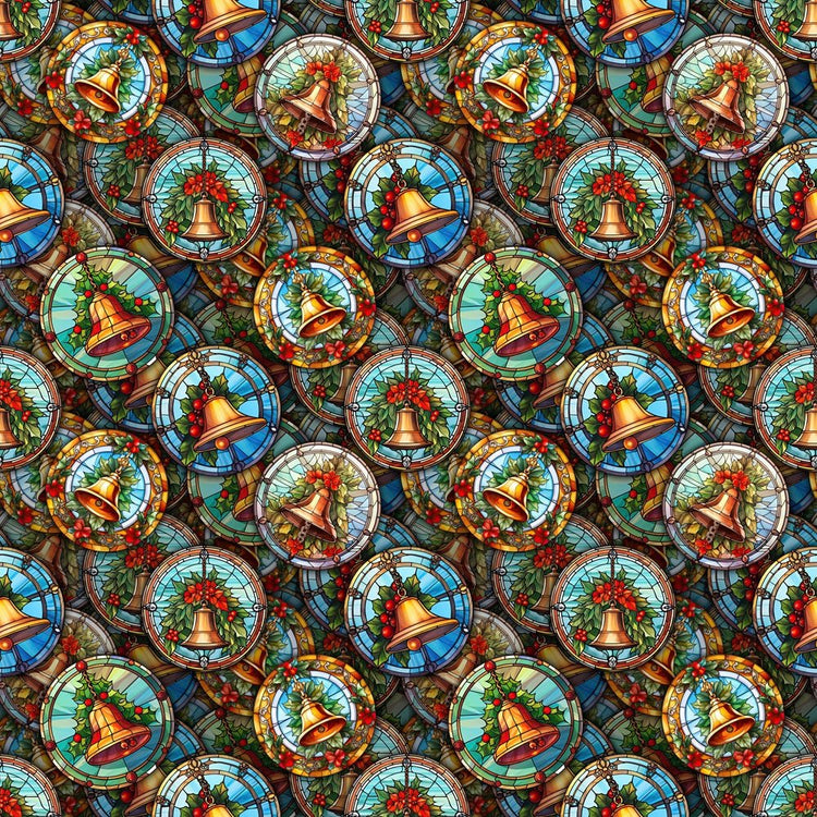 Packed Stained Glass Christmas Fabric