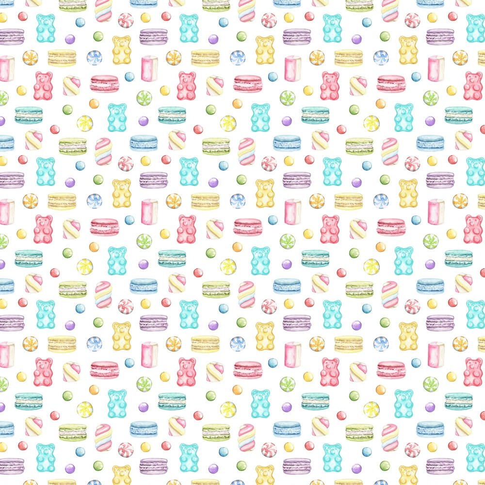 The White Packed Sweets & Marshmallow Treats Fabric is part of the Sweet Tooth Fabric Collection printed by Sew Creative Fabrics. Digitally Printed on 100% cotton and measures 43-44" wide.
