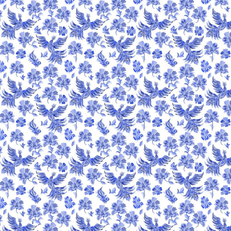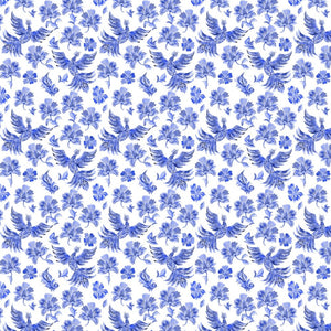 The Blue and White Packed Ukrainian Fantasy Birds & Flowers Fabric is part of the Ukrainian Folk Painting Fabric Collection printed by Sew Creative Fabrics. Digitally Printed on 100% cotton.