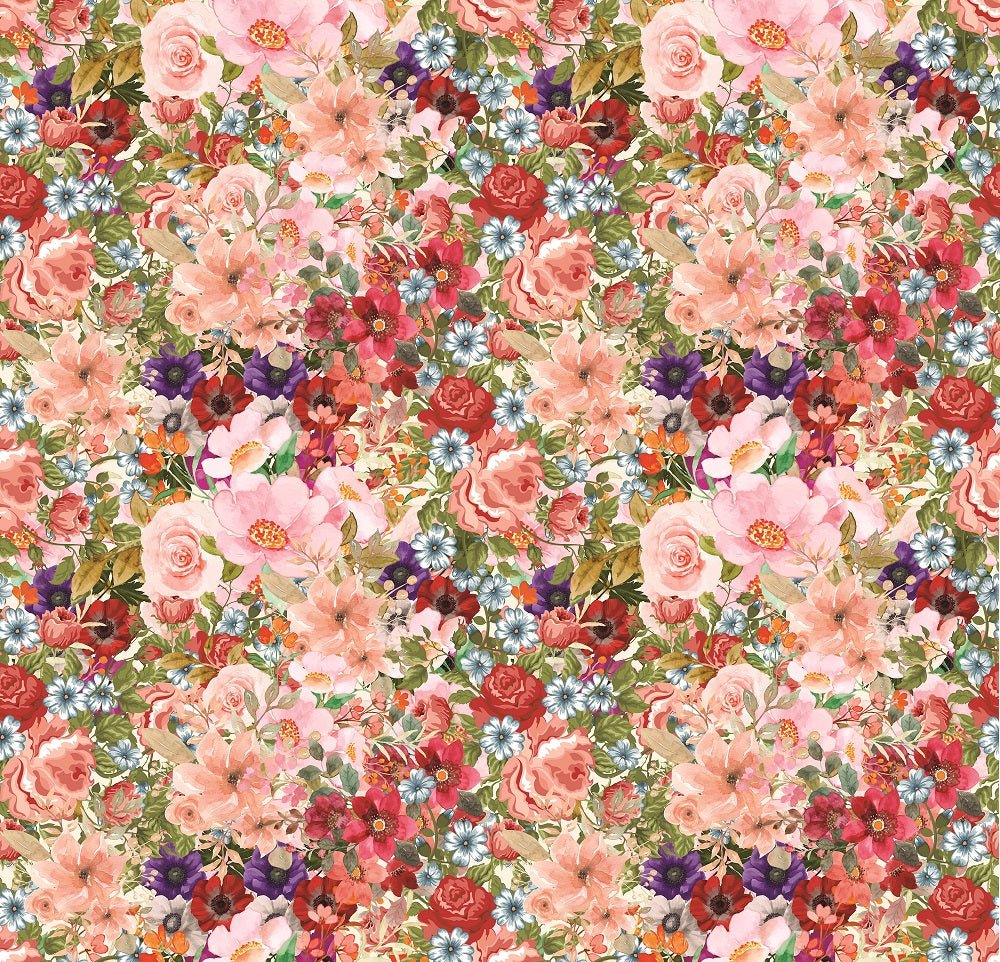 Packed Watercolor Flowers Pattern #3 Fabric Details