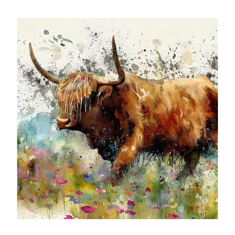 Paint Drip Highland Cow #1 Fabric Panel Details