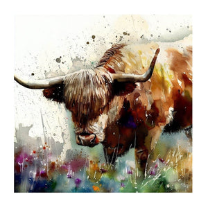 Paint Drip Highland Cow #3 Fabric Panel