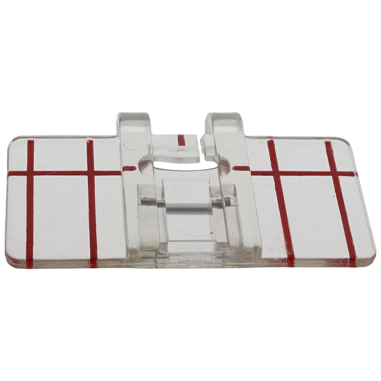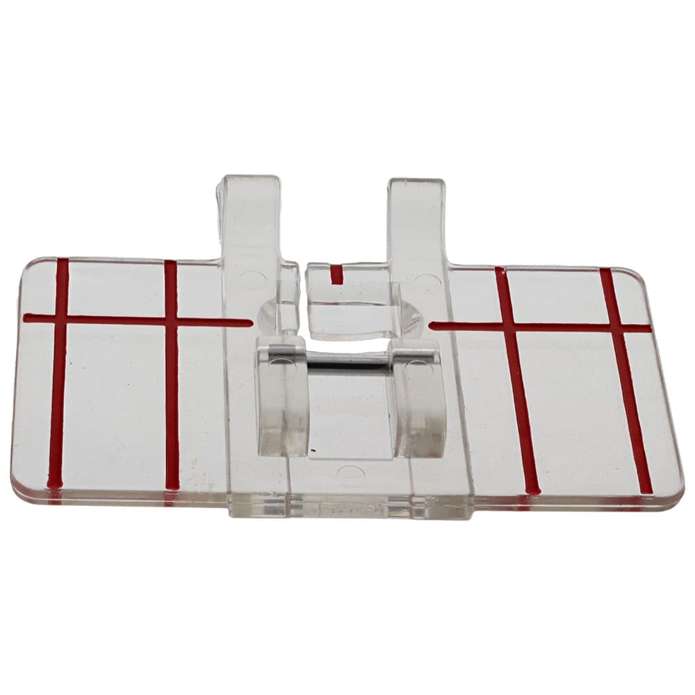 This foot is ideal for sewing decorative, side motion stitches as well as guiding stitches. Sew perfectly straight lines in 1/4" (6mm) and 1/2" (12mm) increments.