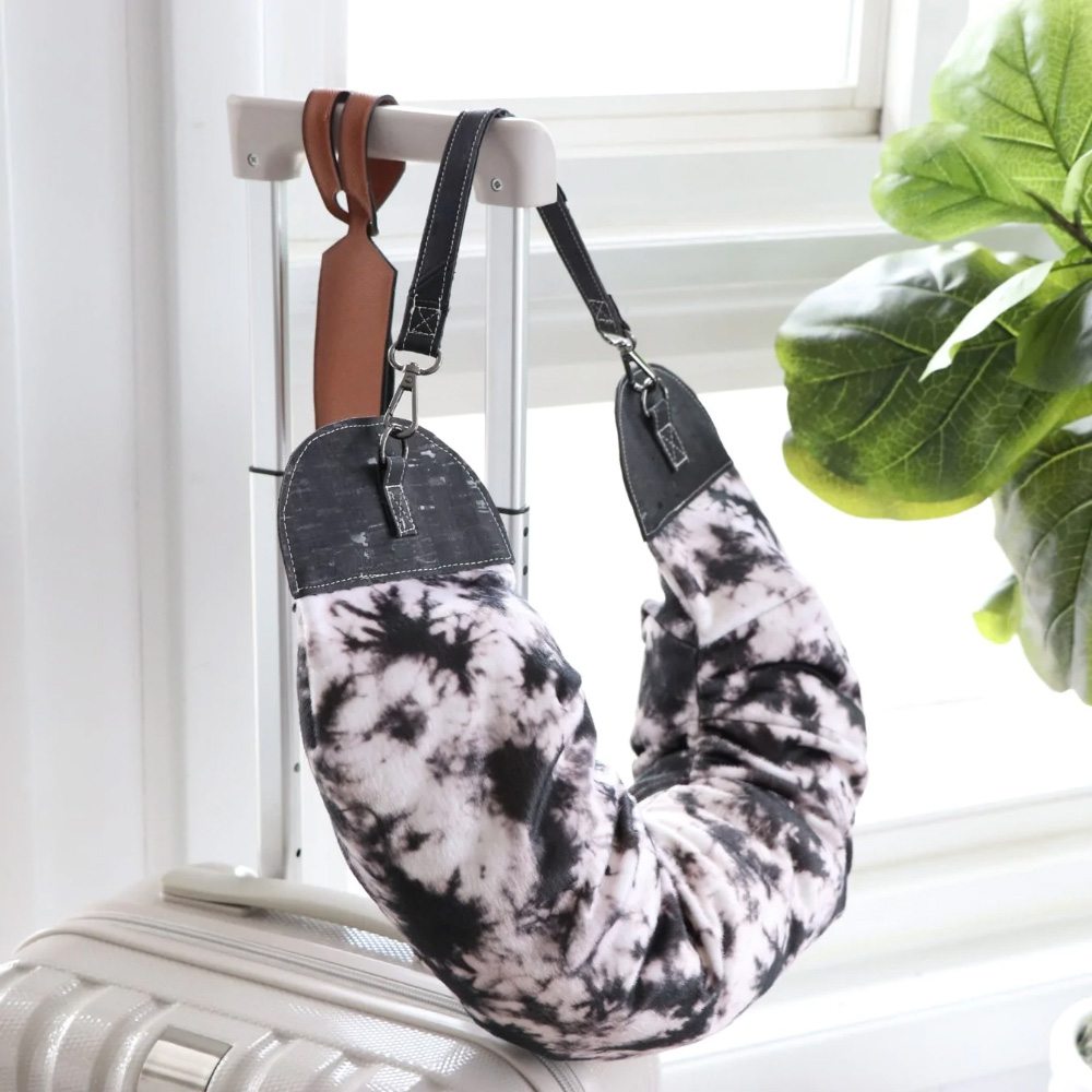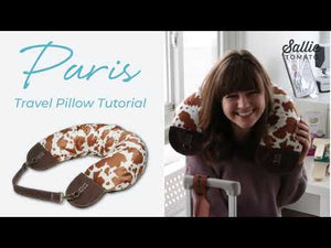 Neck pillows make all the difference when traveling! The Paris Neck Pillow Pattern has the option of an adjustable strap or a simple handle to carry or clip to a carry-on. The finished size is 18" wide, 14" tall, and 5-1/2" deep. The Paris Neck Pillow Pattern includes recommended fabrics and a list of materials and supplies.