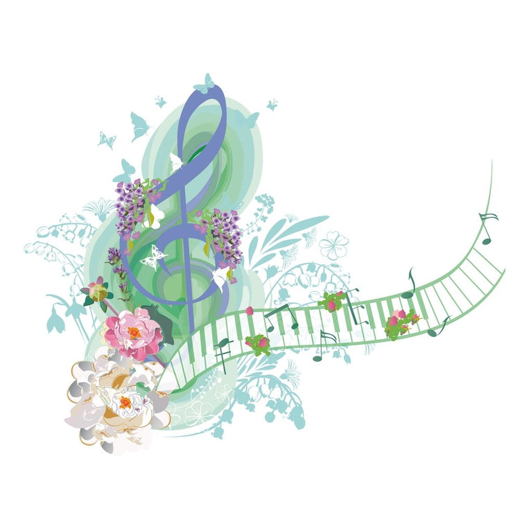 The Pastel Florals Treble Clef Fabric Panel is part of the Abstract Musical Notes Fabric Collection printed by Sewing Parts Online. Digitally Printed on 100% cotton. This panel is available in 6 different sizes: