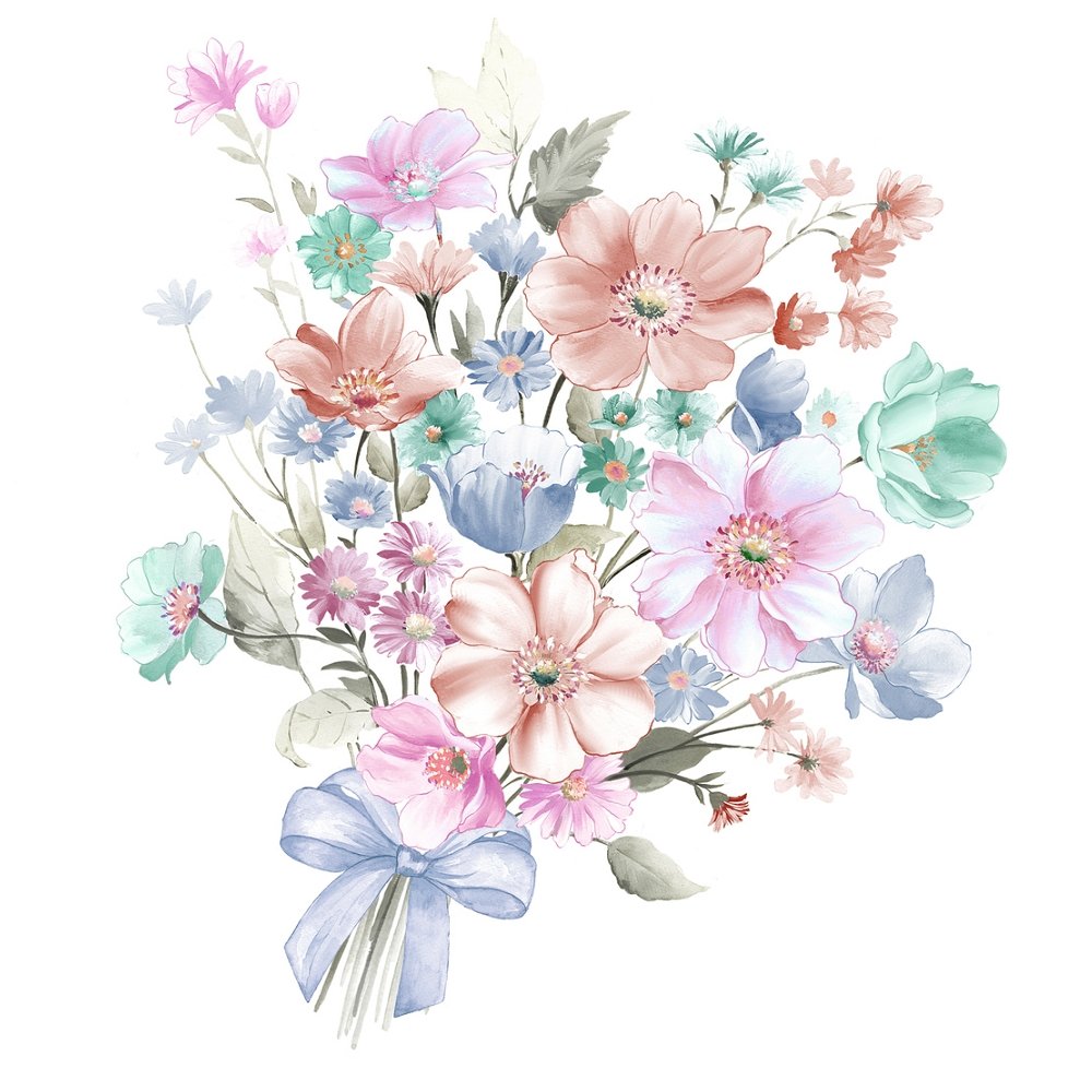 The Pastel Wildflower Bouquet Fabric Panel is part of the Watercolor Floral Fabric Collection printed by Sewing Parts Online. Digitally Printed on 100% cotton. This panel is available in 6 different sizes: