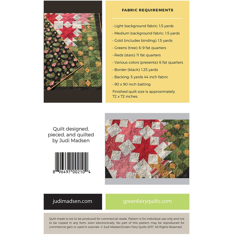 Designed by Judi Madsen the Patchwork Christmas Quilt Pattern is fat quarter friendly and considered an intermediate skill level design. The Patchwork Christmas Quilt finishes to 72" square and includes full-color instructions.