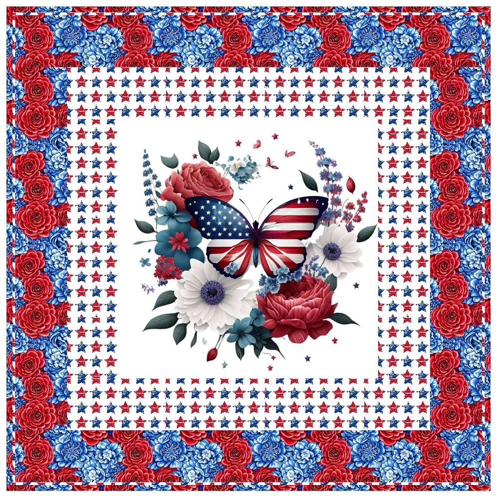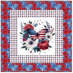 Patriotic Butterfly 1 & Packed Flowers Wall Hanging 42" x 42"