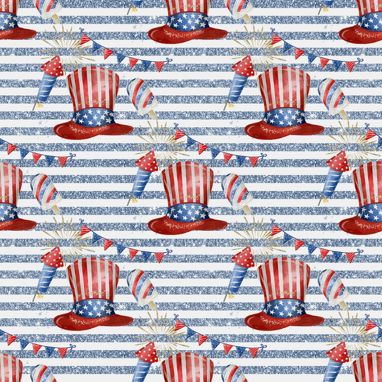 The Blue Patriotic Party Supplies & Stripes Fabric is part of the Celebrate Freedom Fabric Collection printed by Sew Creative Fabrics. Digitally Printed on 100% cotton and measures 43-44" wide.