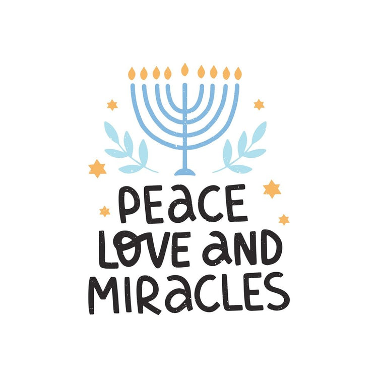 The Peace Love & Miracles Fabric Panel is part of the Judaica Fabric Collection printed by Sewing Parts Online. Digitally Printed on 100% cotton. This panel is available in 6 different sizes: