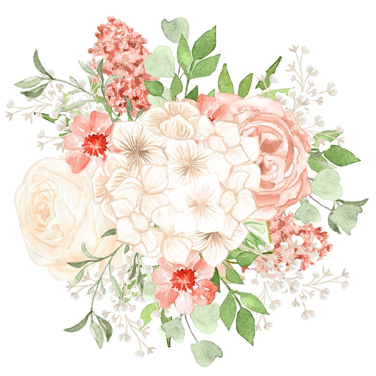 The Peach Romance Bouquet Variation #2 Fabric Panel is part of the Peach Romance Fabric Collection printed by Sew Creative Fabrics. Digitally Printed on 100% cotton. This panel is available in 6 different sizes: