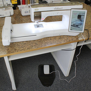 If your sewing area has laminate or hardwood floors, the Pedal-Stay might shift, so included with the mat is a 4" rubber sponge that prevents it from slipping on smooth surfaces.