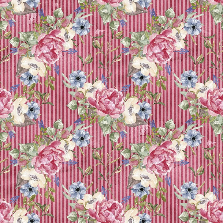 The Peonies Wreath Bouquet on Stripes Fabric is part of the Peonies Wreath Fabric Collection printed by Sew Creative Fabrics. Digitally Printed on 100% cotton.