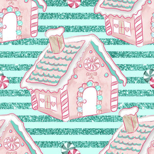 The Green Peppermint Christmas Gingerbread House on Stripes Fabric is part of the Peppermint Christmas Fabric Collection printed by Sew Creative Fabrics. Digitally Printed on 100% cotton.