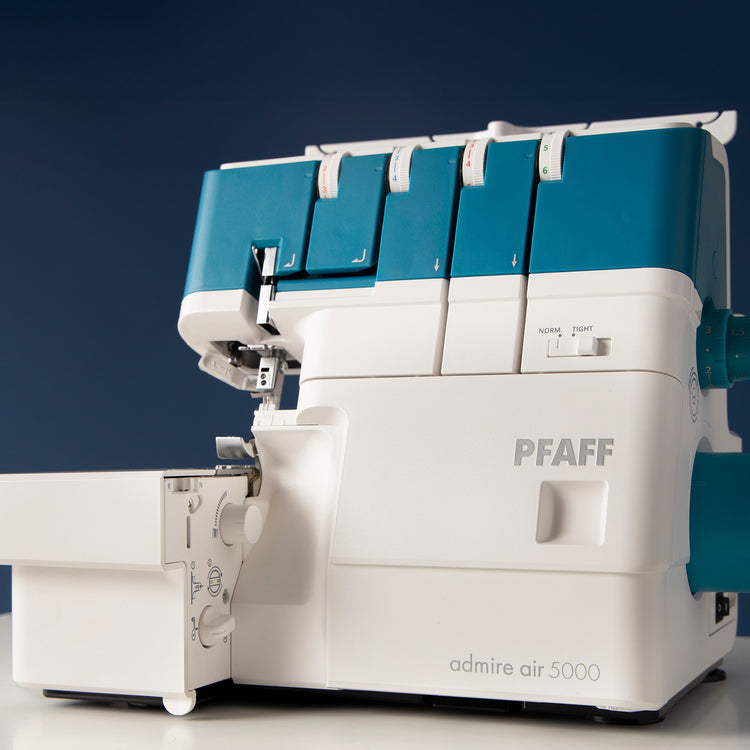 The Pfaff Admire Air 5000 Serger is a game-changer for sewists looking to achieve professional-quality finishes with ease and efficiency. Designed with advanced air-threading technology, this machine allows you to effortlessly thread the loopers with just a touch of a lever, eliminating the hassle of manual threading. Its user-friendly design is perfect for both beginners and experienced sewists, providing reliable performance on a variety of fabrics, from lightweight silks to thick, stretchy knits. With a wide range of stitch options, including 4-thread overlock for secure seams, 3-thread rolled hems for delicate edges, and flatlock stitches for decorative accents, the Admire Air 5000 offers versatility for all your creative needs. The adjustable stitch length and differential feed ensure smooth, even stitching on every fabric, while the integrated thread cutter and brightly lit workspace add convenience and precision to every project.