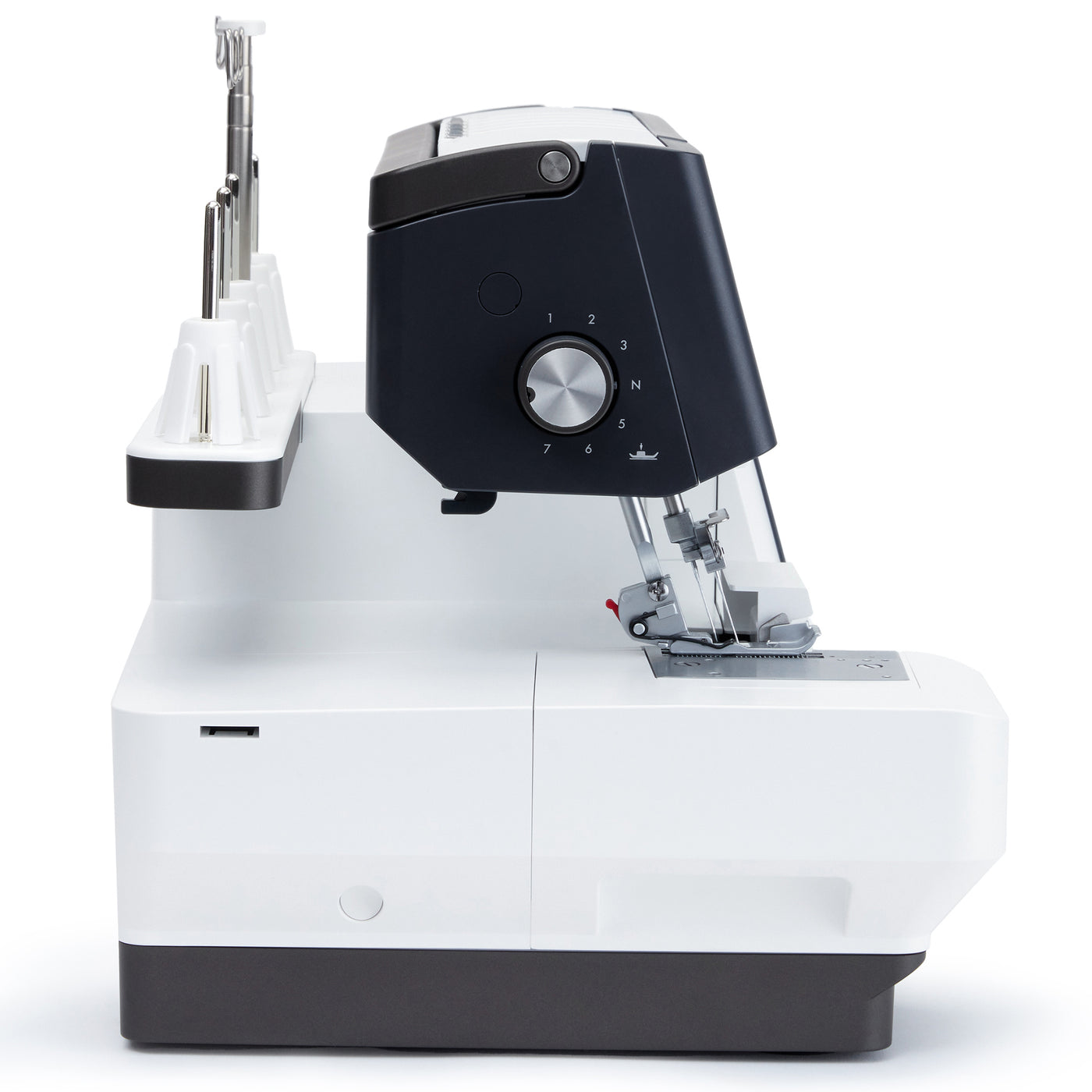 One of its standout features is the air-threading system, which makes threading the loopers effortless. With just the push of a lever, threads are automatically guided into place, saving you time and reducing frustration. The color-coded threading path and intuitive controls make setup simple, so you can focus on your creativity. It also features adjustable stitch length, differential feed, and presser foot pressure, ensuring perfect stitches and smooth handling across all fabric types. The Pfaff Admire Air 6000 offers a variety of stitch options, and its LED-lit workspace provides clear visibility and was built for both speed and durability.