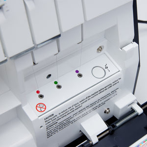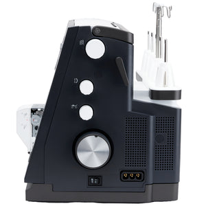 The One-Touch Electronic Air-Threading Loopers on the Pfaff Admire Air 6000 redefine ease and convenience in serging. With just the press of a button, the machine uses advanced air-threading technology to effortlessly thread the loopers, eliminating the frustration of manual threading. This innovative feature saves time and simplifies setup, making it perfect for beginners and experienced sewists alike. Whether you're switching threads or setting up for a new project, the one-touch electronic air-threading system ensures a smooth, hassle-free start, so you can focus on creating with confidence and precision.