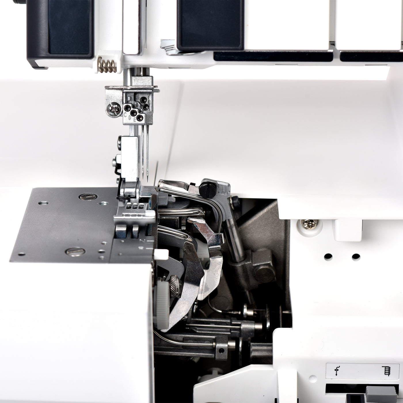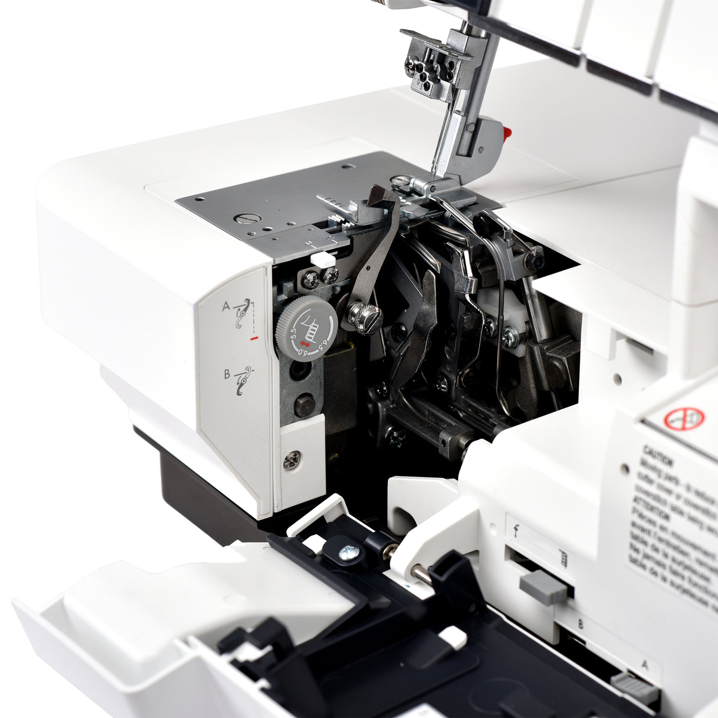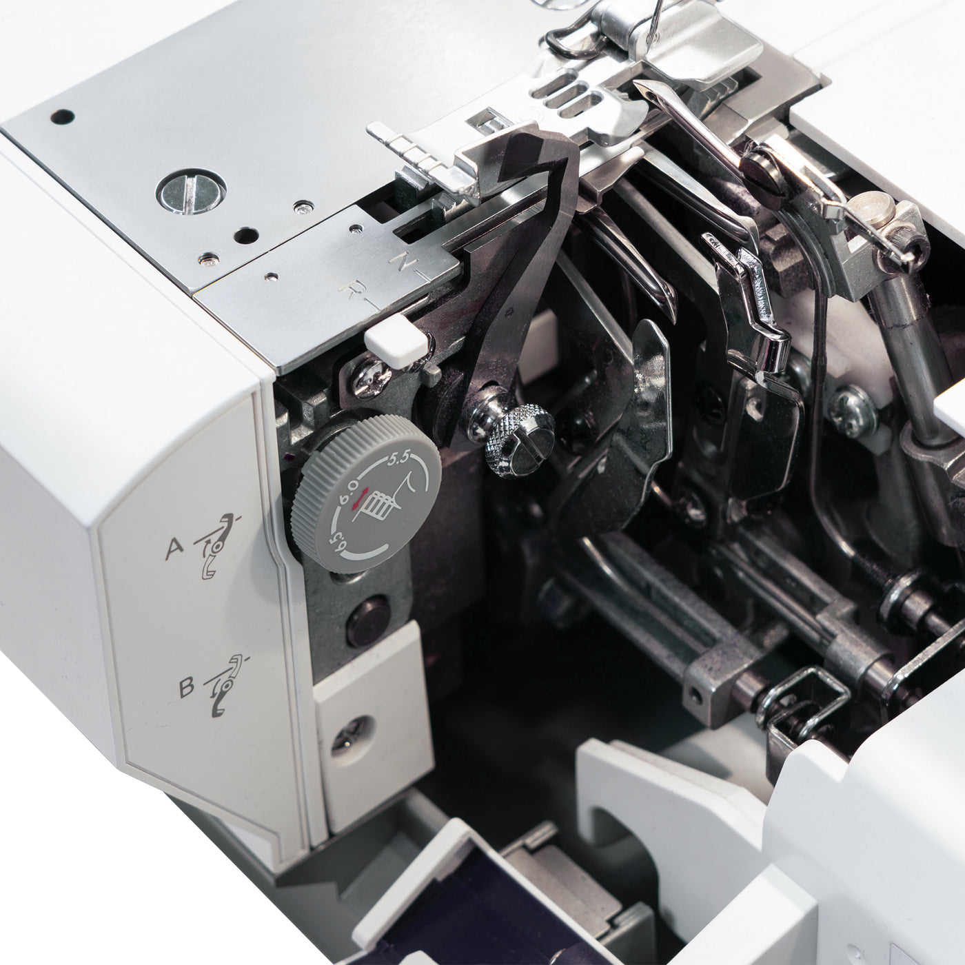 The Adjustable Cutting Width adds precision and versatility to your serging projects. This feature allows you to easily adjust the width of the fabric edge being trimmed, ensuring a clean, professional finish that perfectly matches your stitch choice and fabric type. Whether you're working with delicate materials or heavy fabrics, the adjustable cutting width provides the flexibility to create seams, hems, and edges that meet your exact specifications.