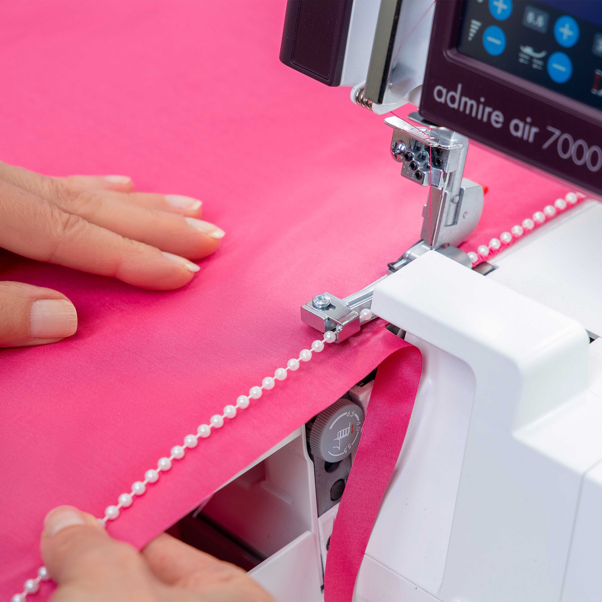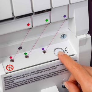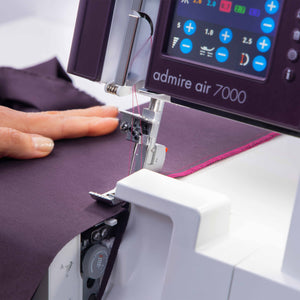 With just the push of a button, this advanced system uses air to quickly and securely thread both loopers, eliminating the frustration and time-consuming process of manual threading. Perfectly designed for efficiency and ease, the air-threading system ensures consistent and accurate threading every time, whether you're working with lightweight fabrics or heavier materials. This innovative feature makes switching threads for different projects simple and stress-free, so you can focus on your creativity rather than setup. With the Pfaff Admire Air 7000, threading has never been easier.