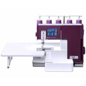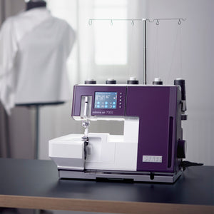 The Pfaff Admire Air 7000 Serger & Coverstitch Combo is the ultimate tool for achieving professional-quality finishes with ease. Designed for precision and efficiency, this advanced coverlock machine features air-threading loopers that make threading a breeze. With just the push of a lever, the loopers are automatically threaded, saving time and eliminating frustration. Offering versatile 5/4/3/2 thread capability, and 26 built-in stitches, the Admire Air 7000 handles a wide range of projects, from durable seams and stretchy activewear to delicate decorative details. Its large sewing space accommodates bigger projects like quilts and home décor, while the vibrant color touchscreen provides intuitive access to stitch options, settings, and tutorials. This machine combines speed and power, delivering up to 1,300 stitches per minute without compromising stitch quality. Built-in LED lighting brightly illuminates your workspace, ensuring precise stitching even in low-light conditions. Automatic tension adjustments make achieving flawless results effortless, while the included extension table provides extra room for handling bulky fabrics or intricate designs. Safety features and exceptional engineering ensure a worry-free sewing experience. Whether you're a professional or a passionate hobbyist, the Pfaff Admire Air 7000 Serger & Coverstitch Combo empowers you to create with confidence and ease, making it the perfect companion for all your sewing and serging needs.