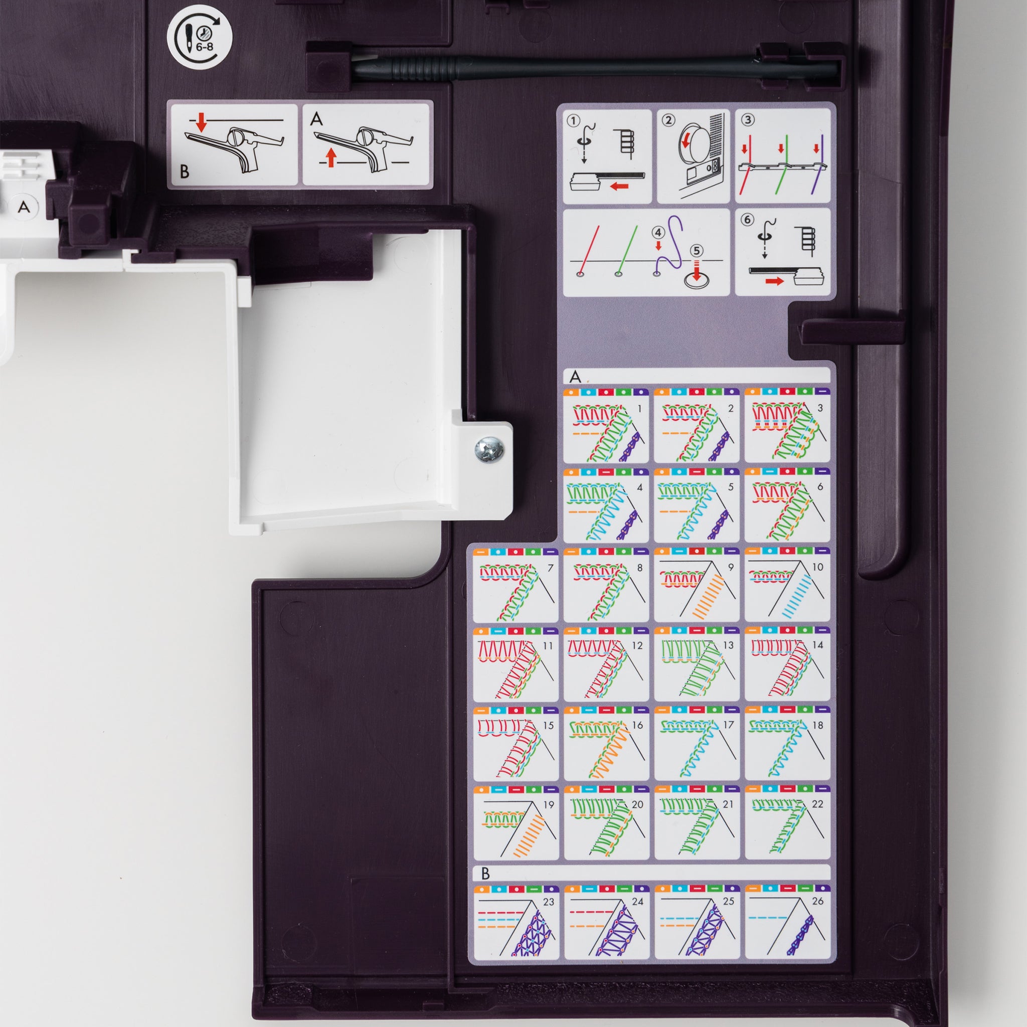 A thoughtfully designed Waste Tray ensures a clean and organized workspace as you sew. This handy accessory collects trimmed fabric and thread remnants during stitching, keeping your sewing area free of clutter. The tray is easy to attach, remove, and empty, making maintenance quick and effortless. Perfect for serging projects where cutting excess fabric is a must, the waste tray helps you focus on your creativity without the distraction of mess. With its practical design, this feature adds convenience and efficiency to your sewing experience.