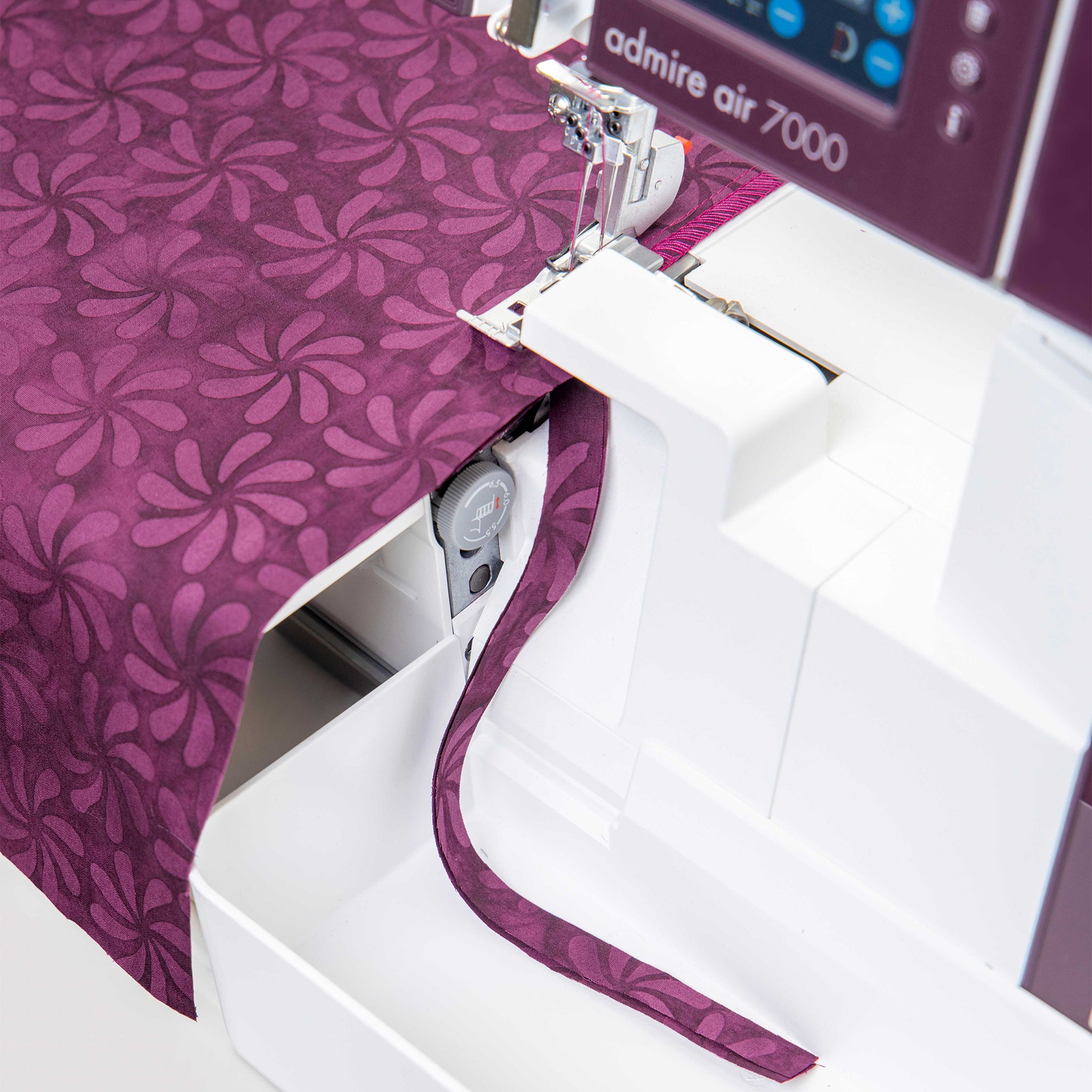 The Admire Air 7000 is equipped with a convenient Presser Foot Pressure Dial, allowing you to adjust the pressure of the presser foot to perfectly suit your fabric. This feature ensures optimal feeding for a wide variety of materials, from lightweight silks to heavy denim and everything in between. By customizing the pressure, you can achieve smooth, even stitches without puckering or distortion, regardless of fabric thickness. Easy to access and simple to use, the Presser Foot Pressure Dial gives you precise control, making it effortless to switch between projects and materials for professional-quality results every time.