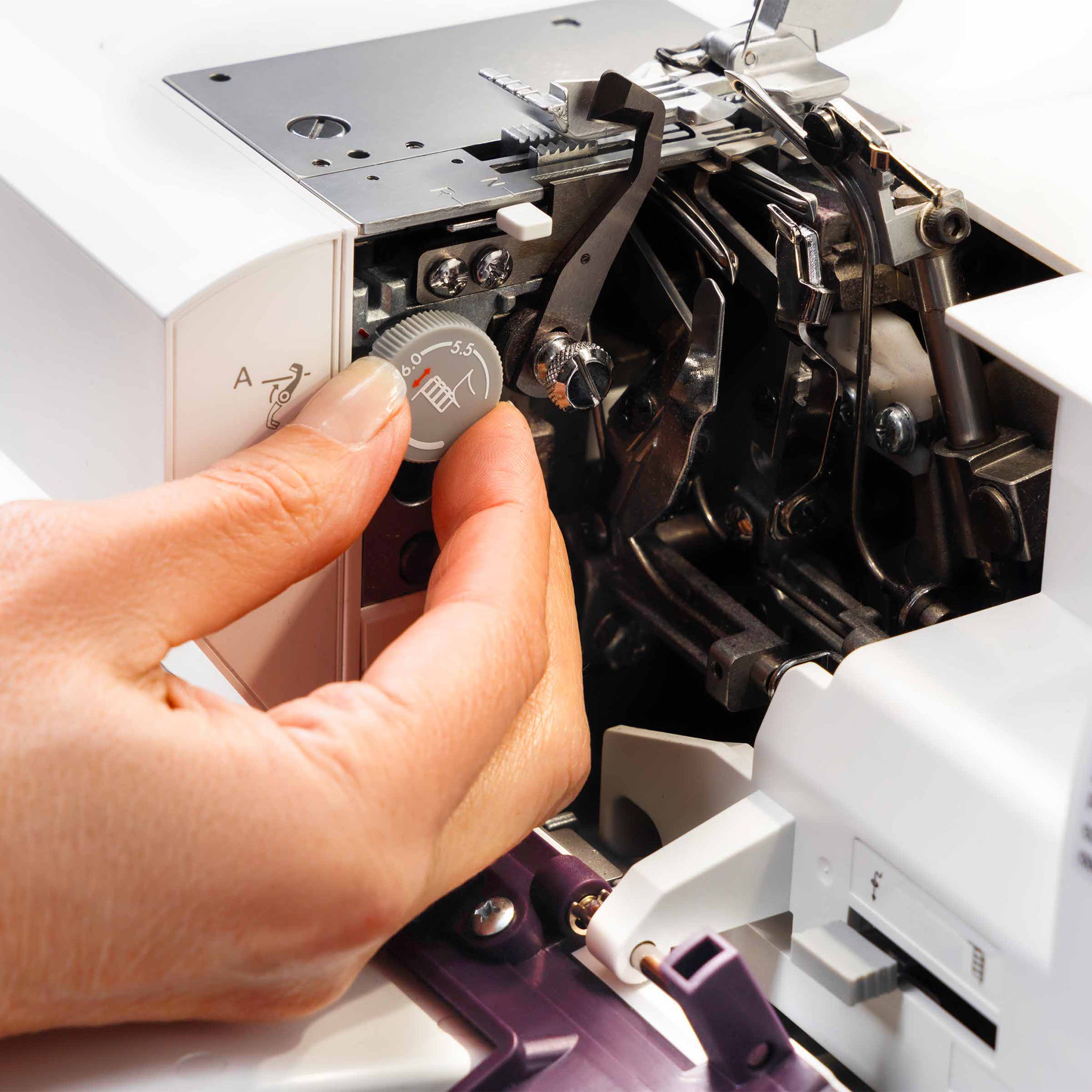 An Adjustable Cutting Width provides ultimate flexibility for clean and precise finishes on every project. This customizable feature allows you to fine-tune the width of the fabric edge being trimmed, ensuring perfectly aligned seams and edges, no matter the fabric type or stitch selection. Whether you're working with delicate lightweight materials or thick, sturdy fabrics, the adjustable cutting width helps you achieve flawless results with minimal effort. Ideal for creating rolled hems, decorative edges, or professional overlock seams, this versatile feature enhances both functionality and creativity.