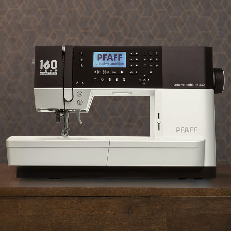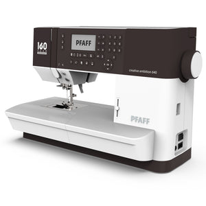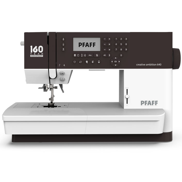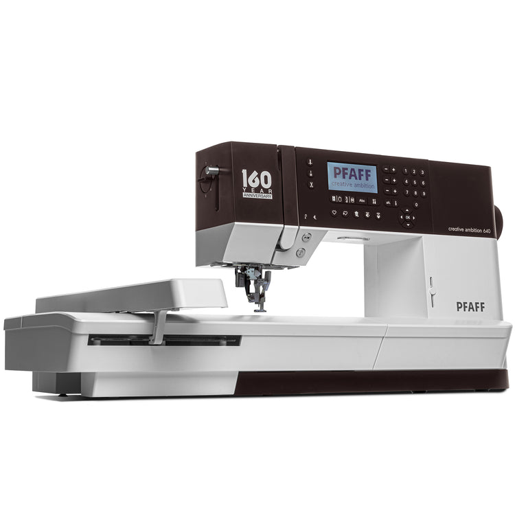 Celebrate 160 years of artistry with the Pfaff Creative Ambition 640 Anniversary Edition Sewing & Embroidery Machine, a tribute to Pfaff's legacy of innovation and precision. This limited-edition model combines timeless craftsmanship with cutting-edge technology to bring your creative visions to life. Whether you're quilting intricate patterns, sewing elegant garments, or adding personalized embroidery to your projects, the Creative Ambition 640 is designed to meet every need with sophistication and ease. With 150 built-in stitches, including utility, decorative, and quilting options, this machine offers a diverse palette for all your sewing endeavors. The 101 built-in embroidery designs open up endless possibilities for customization, allowing you to embellish your creations with flair and originality.