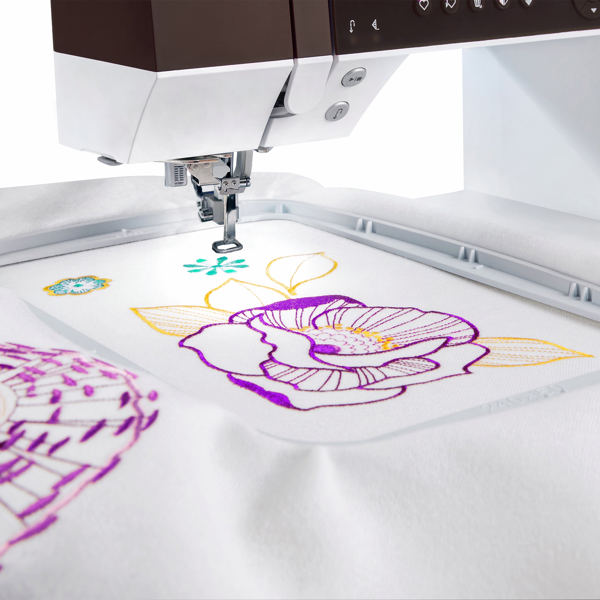 The Pfaff Creative Ambition 640 Anniversary Edition offers a generous 9.4" x 5.9" embroidery area, providing ample space to create detailed and larger-scale designs with ease. This expansive workspace allows you to bring ambitious embroidery projects to life, from intricate motifs to bold monograms and patterns. Whether you're personalizing home décor, crafting unique garments, or designing quilt embellishments, this embroidery area ensures you have the room you need to execute your vision without constant rehooping.