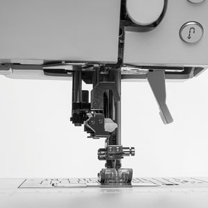 The adjustable foot pressure feature allows users to modify the pressure applied to the fabric for optimal control. This flexibility is especially helpful when working with diverse fabric types, from delicate silks to thick denim, as it prevents fabric shifting and bunching. With this adjustable setting, sewists can achieve smooth, even stitches across various materials, enhancing both ease and quality in every project. The dial has been pre-set to the standard value "N". Though it needs no adjustment for most fabrics, it can be adjusted for very thick or very thin fabrics (increase for heavy-weight fabrics, decrease for lightweight fabrics).