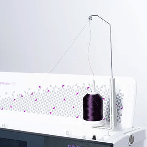Designed to handle large spools with ease, the Pfaff creative™ Spool Stand ensures smooth thread delivery to your machine—no tangles, no snags. Perfect for decorative and specialty threads, it accommodates various spool sizes and types, helping them glide seamlessly as you sew. The stand mounts directly to the top of your machine and includes a thread guide, thread net, and sturdy spool holder for optimal control and convenience.