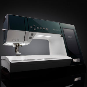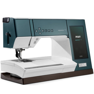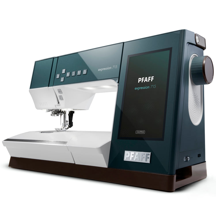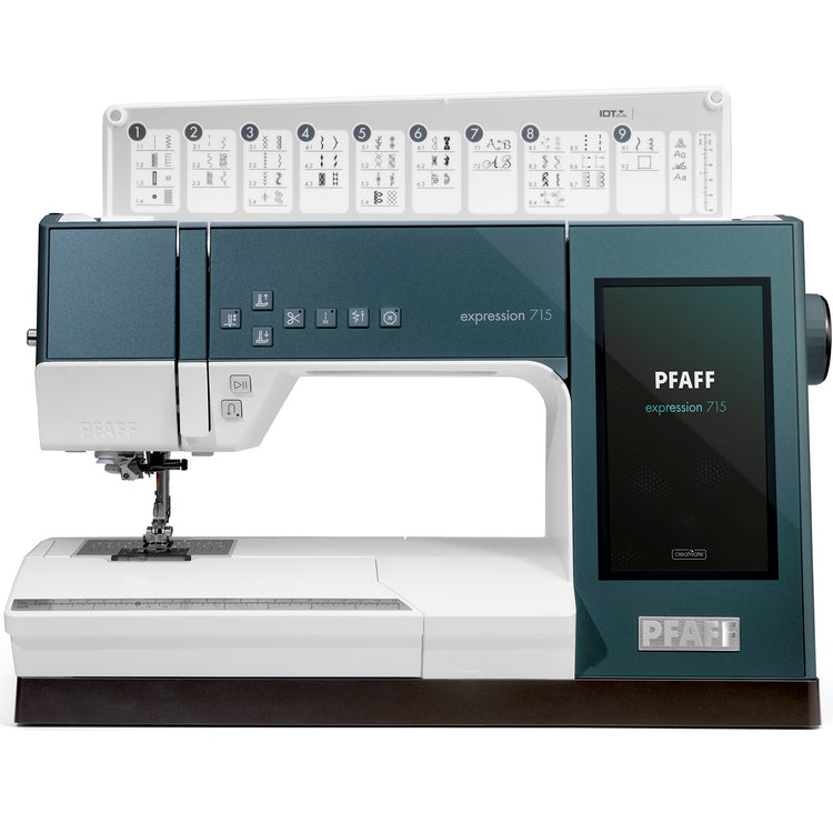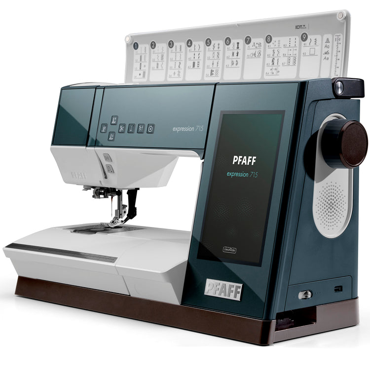 Step into a new world of precision and creativity with the PFAFF® expression™ 715 Sewing Machine—a machine built for ambitious sewists who want more space, more stitches, and more innovation at their fingertips. With an expansive 9.8" workspace and large sewing space, this machine is designed to handle everything from king-size quilts to intricate garment construction with ease. The bright 8" color touch screen and large color capacitive display make it simple to select, preview, and adjust your stitches, while the built-in Help Center offers instant guidance to keep you sewing with confidence.