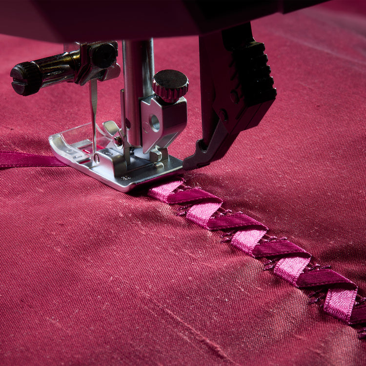 Bobbin changes are effortless with the quick-set drop-in bobbin. Drop your bobbin in the machine, pull your threads through the slot, and you are ready to go.