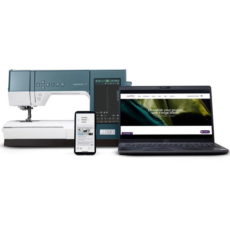 The built-in WiFi on the Pfaff expression™ 715 keeps you connected and ready to create, allowing for easy updates, design transfers, and access to online features without cords or extra devices. Paired with the CREATIVATE™ App, your all-in-one resource for sewing, embroidery, quilting, and crafting, you’ll enjoy design tools, tutorials, and machine guidance tailored to your skill level. Explore the Learning Center for step-by-step lessons, discover recommended accessories, needles, and stabilizers, or dive into the Stitch Database to maximize the machine’s full range of capabilities. Whether you’re mastering the basics or exploring advanced functions, CREATIVATE™ helps you achieve professional results—and you can become a free Basic Member today at CREATIVATE.com.