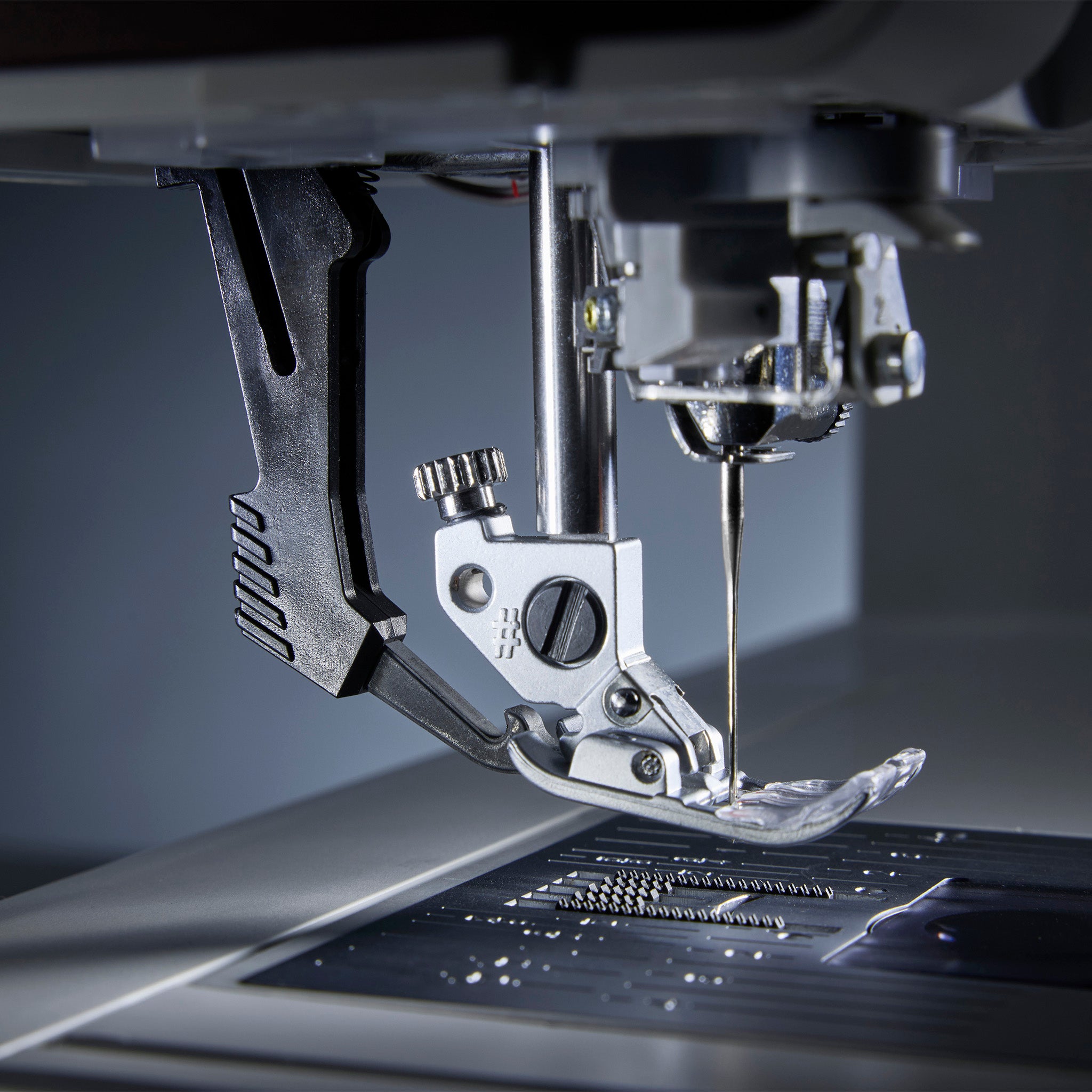 Say goodbye to eye strain and frustration with the automatic needle threader on the expression™ 715. With a simple push of the lever, your needle is threaded in seconds, saving time and keeping your creativity flowing—especially when changing thread colors often. Designed for use with home sewing machine needles size 70–120, this feature makes setup quick and effortless. For best results, avoid transparent nylon monofilament, specialty threads, and wing or twin needles. Whether you’re starting a new project or swapping threads mid-design, the automatic needle threader gets you stitching as fast as inspiration strikes.