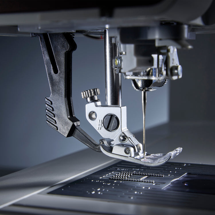 The Select has a built-in lever that, when pressed, automatically lowers the feed dogs so you can quickly switch to free-motion quilting.