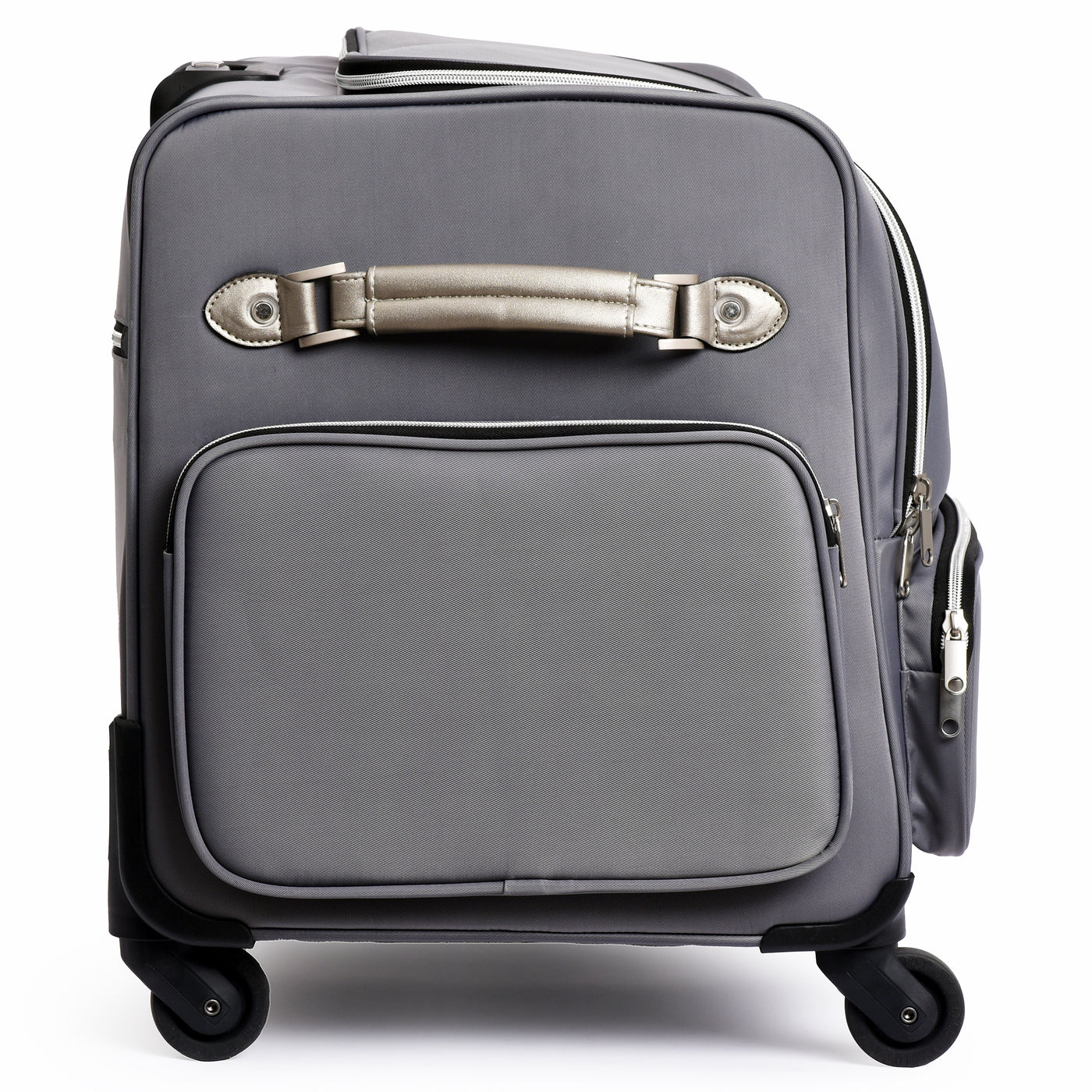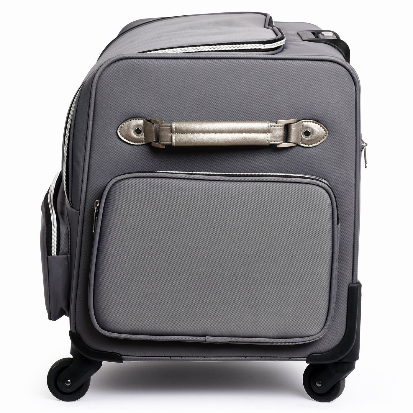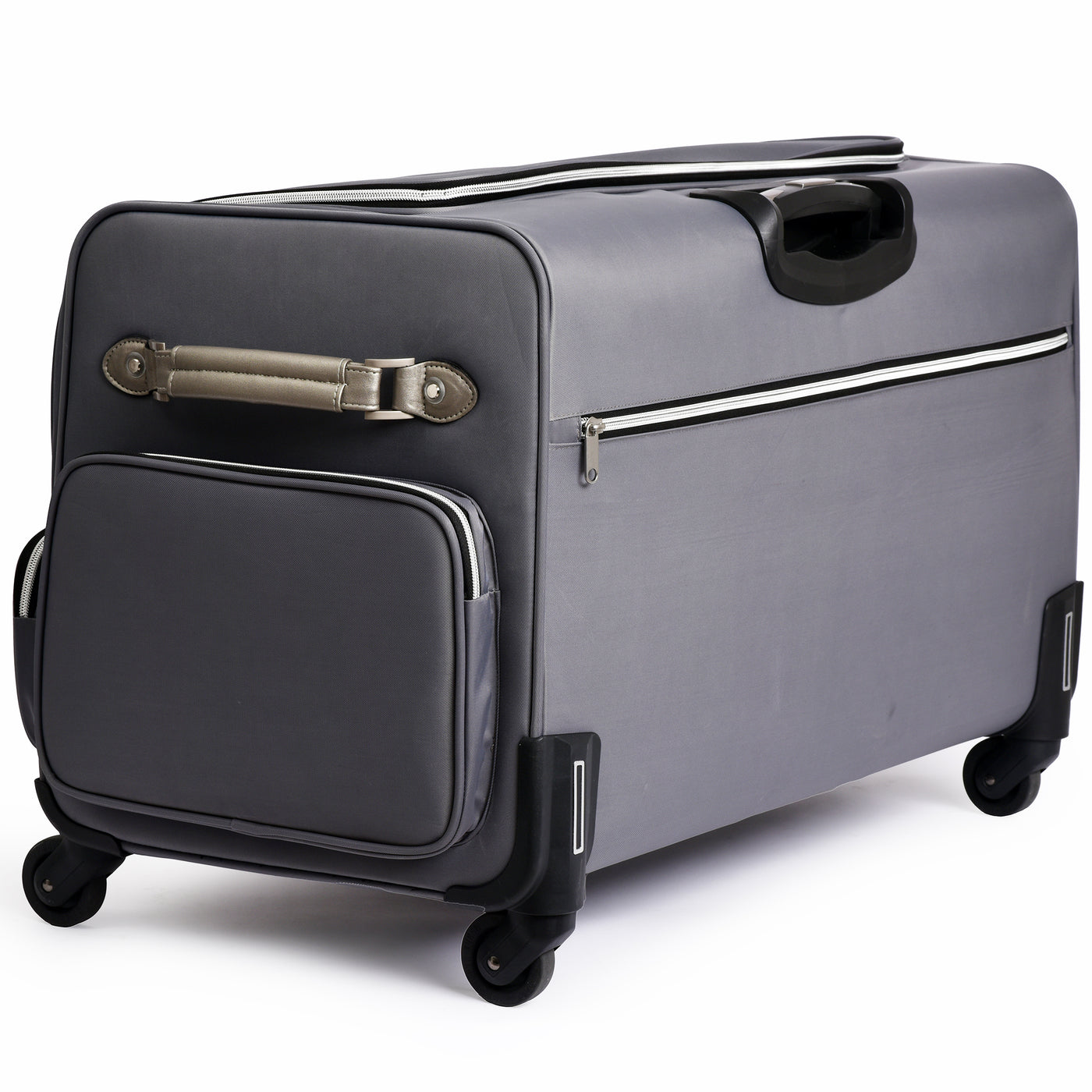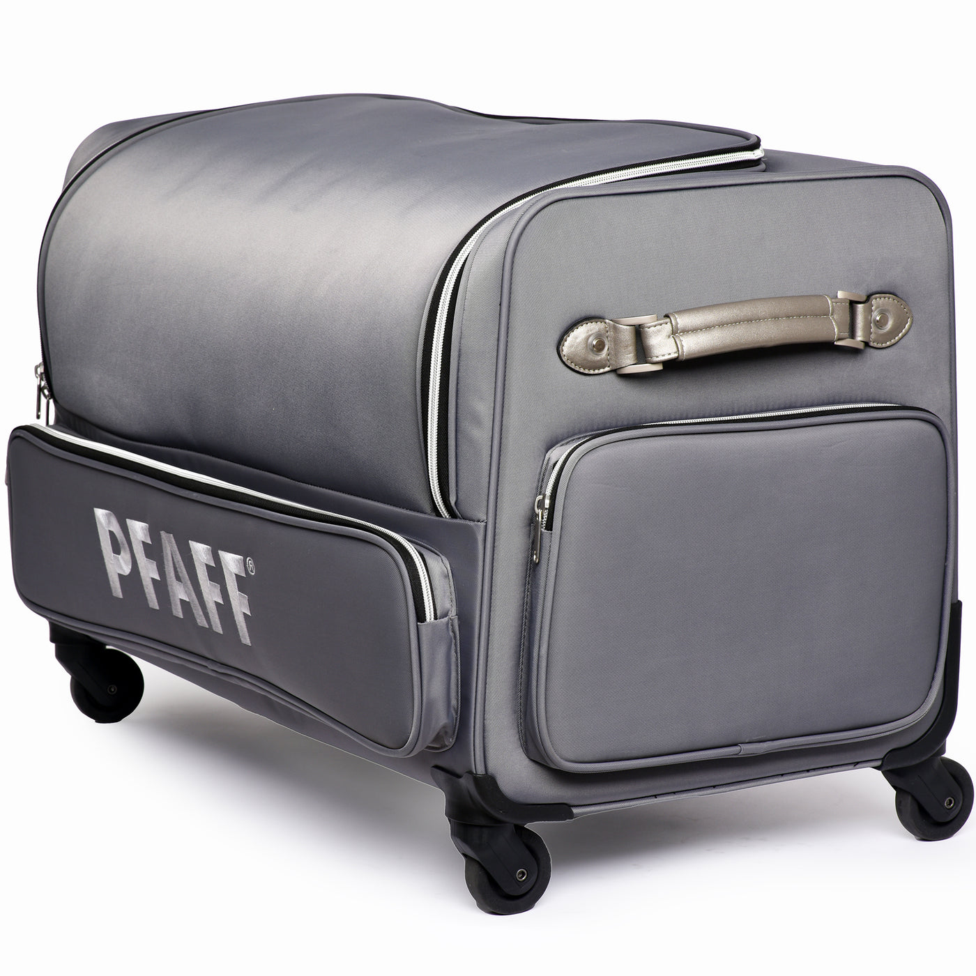 The PFAFF® Large Universal Machine Roller Bag offers a stylish and secure way to transport your machine and accessories. Its padded interior protects your equipment from dust and damage, while four smooth-gliding 360° casters and a telescoping handle make travel effortless. Thoughtfully designed with convenient storage both inside and out, this elegant bag is as functional as it is fashionable. Measuring 30" x 16" x 20", it’s finished in a cool grey polyester twill exterior that’s both durable and modern—perfect for sewists on the go.