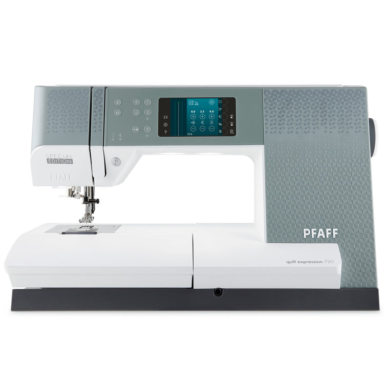 The Pfaff Special Edition Quilt Expression 720 Sewing Machine is a masterpiece of precision and innovation, designed specifically to meet the needs of quilters and advanced sewists. Packed with an impressive array of features, this machine combines functionality with elegant aesthetics, delivering both a striking appearance and unmatched performance. At the heart of the Quilt Expression 720 lies the renowned Original IDT™ System, ensuring even fabric feed from top and bottom for perfectly aligned seams and consistent stitching on any material. Whether you're working on delicate silks or thick quilts, the IDT™ System keeps your layers in place effortlessly. The machine also boasts a wide range of high-quality stitches, including decorative, utility, and quilting stitches, with the ability to customize stitch length and width to suit your creative vision. Its generous 10-inch sewing area to the right of the needle provides ample workspace for large projects, making it ideal for intricate quilts, oversized home décor, or elaborate garments.