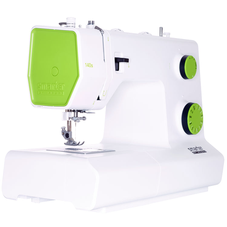 Equipped with a free arm, the Smarter 140S makes sewing cuffs, sleeves, and other hard-to-reach areas simple and efficient. Additional convenience features include snap-on presser feet, a built-in thread cutter, and bright LED lighting to keep your workspace well-lit and comfortable. Compact, durable, and packed with essential features, the Pfaff Smarter 140S is designed to make sewing easy and enjoyable. Whether you're just starting out or looking for a reliable machine to support your creative projects, the Pfaff Smarter 140S Sewing Machine is a dependable partner that helps you achieve professional-quality results with ease.