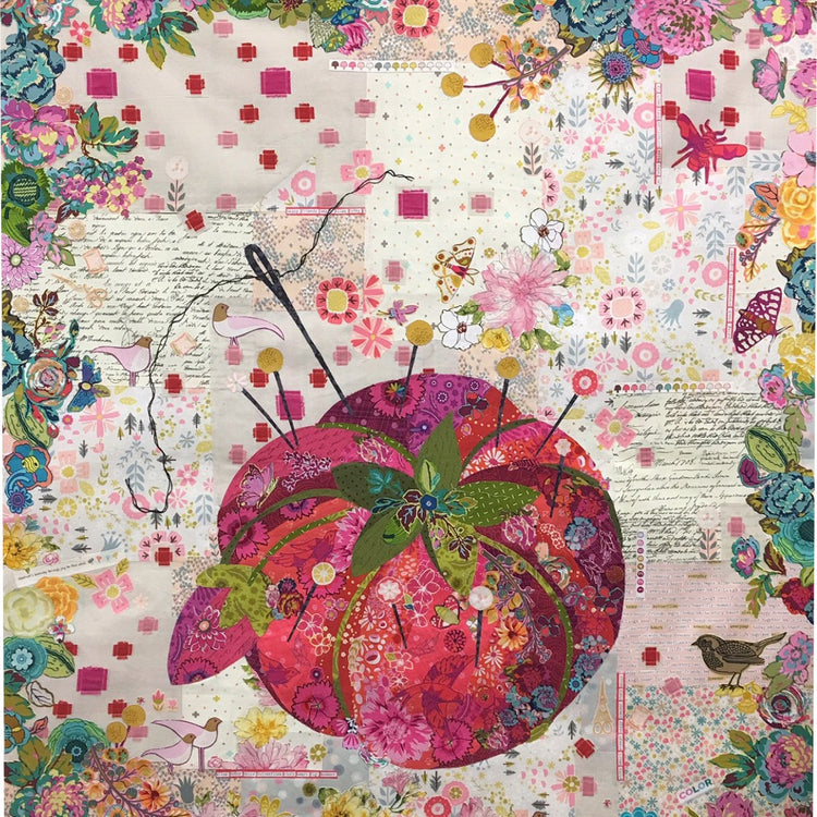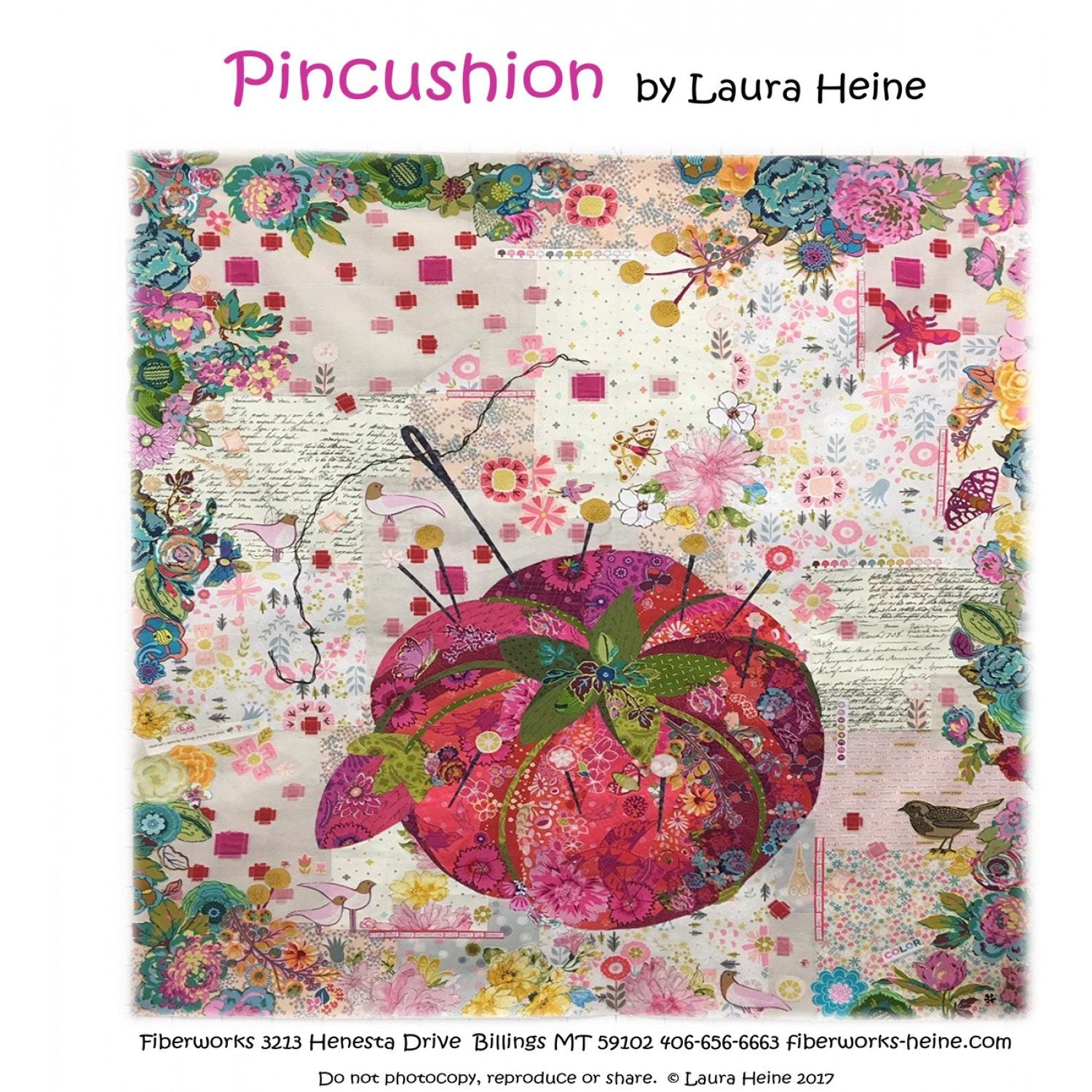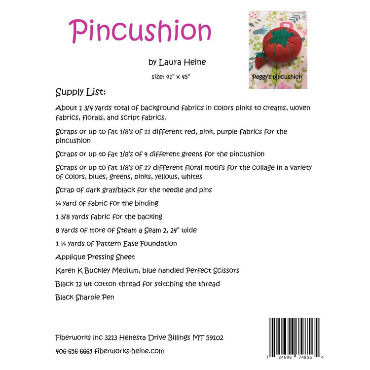 The Pincushion Collage Pattern was designed by Laura Heine for Fiberworks. Create this fun collage with your floral, pink, and cream scrap fabrics. Includes full-size pattern and complete instructions. Finished project size is 41in by 45in.