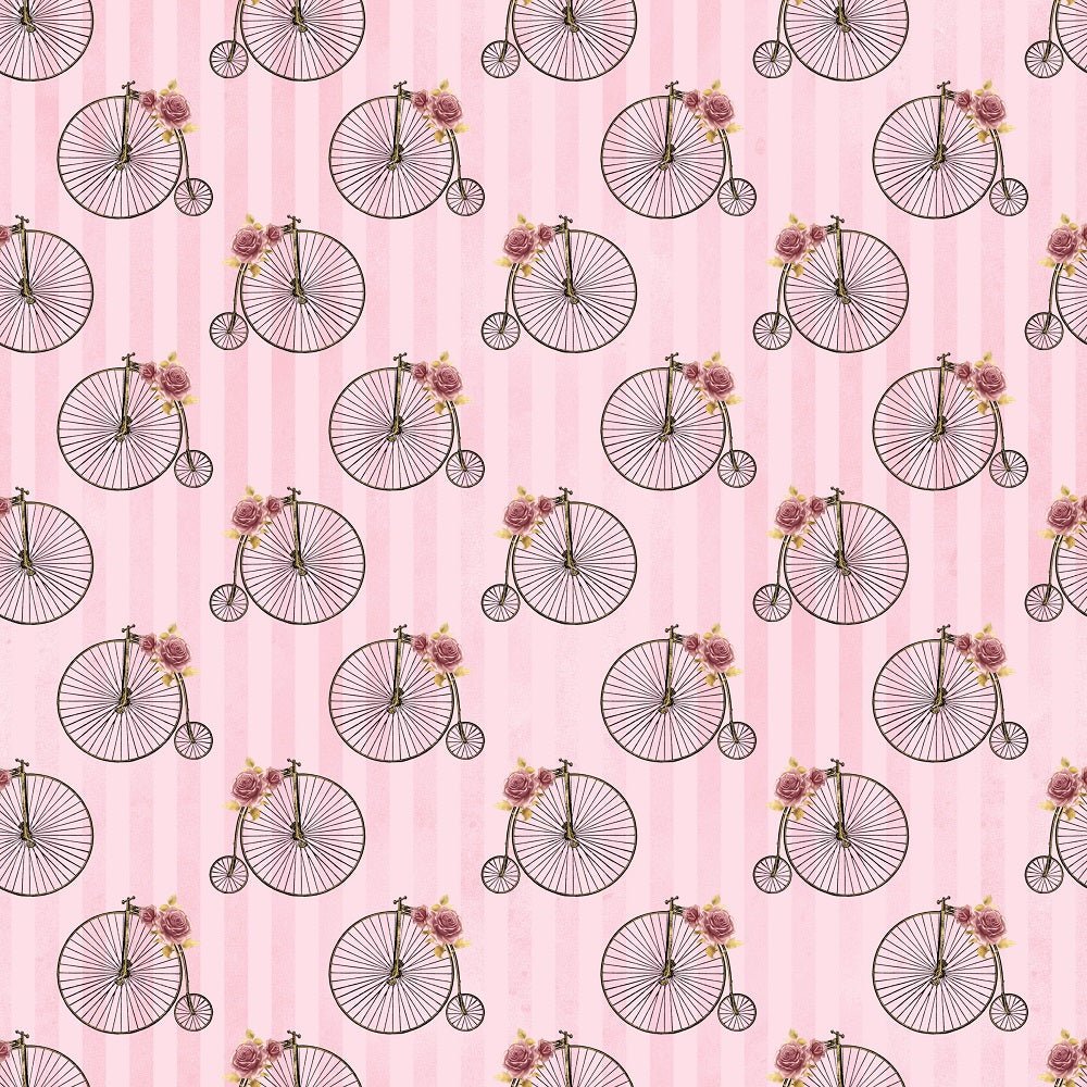 Pink and Gold Steampunk Bicycles Fabric