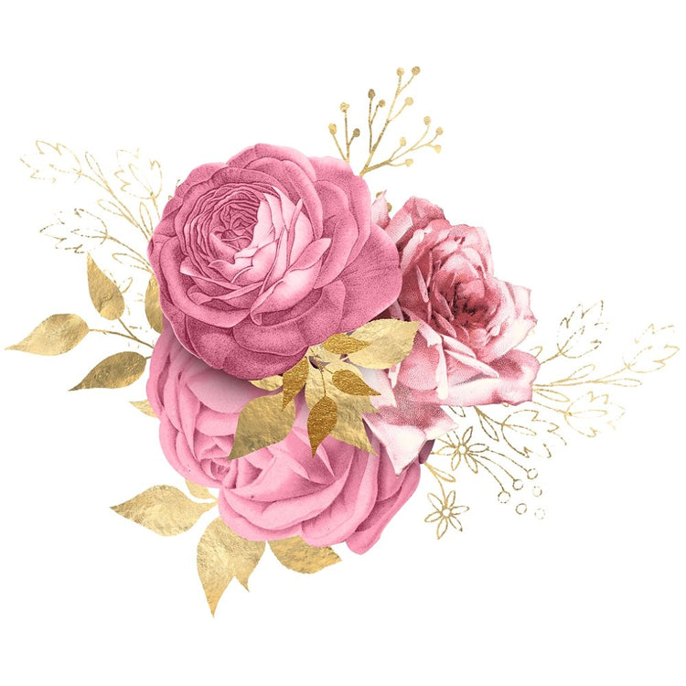 Pink and Gold Steampunk Bouquet Fabric Panel