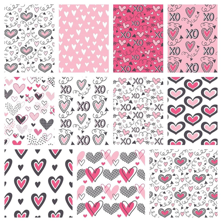Pink XOXO Hearts Fat Quarter Bundle - 11 Pieces