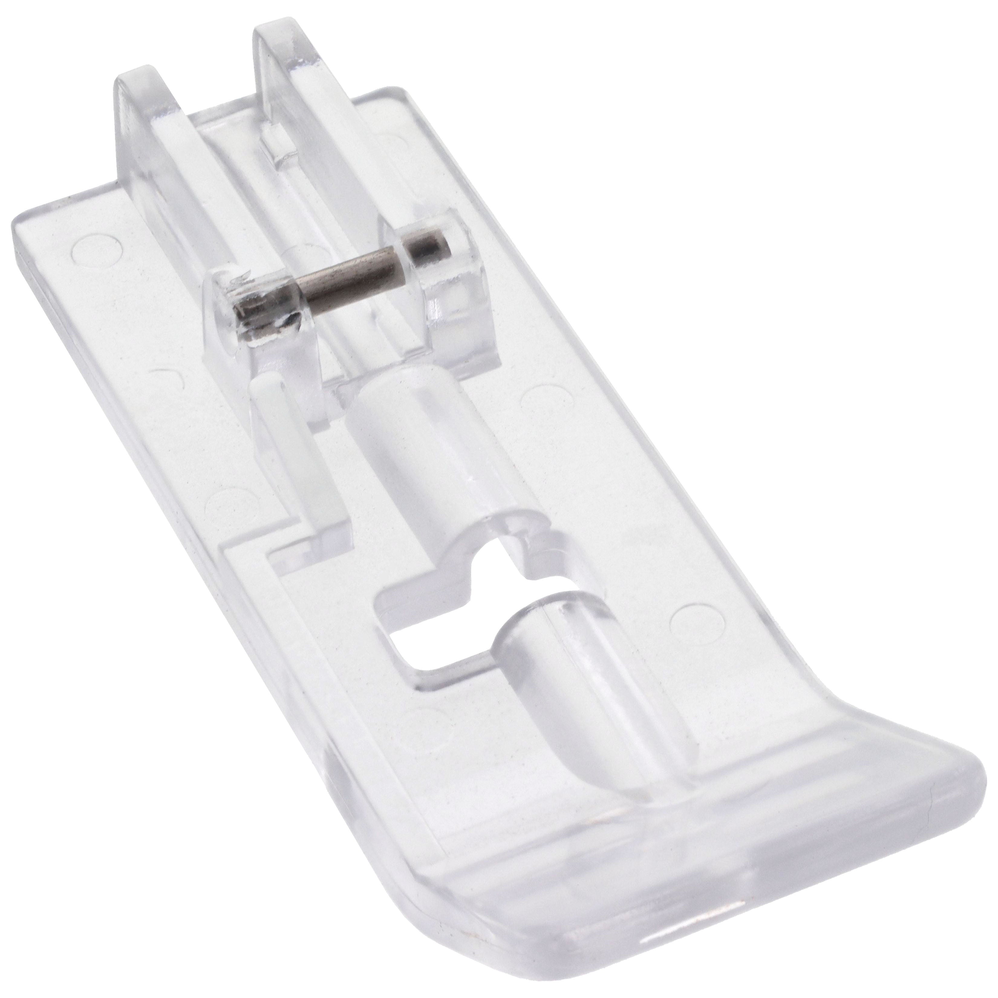 Creative serging occurs when the cover hem stitch and pintuck foot are combined. The pintuck guide lifts lightweight to medium weight fabric to form a raised pintuck. Rows of pintucks are commonly seen in heirloom sewing.