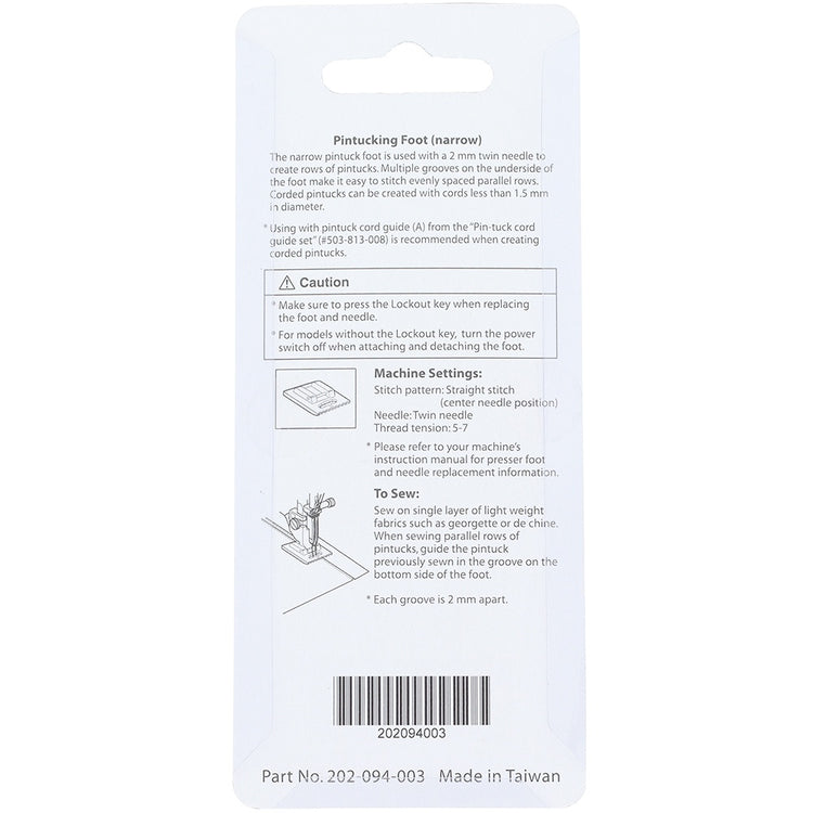 Pintucking Foot (Narrow), Janome #202094003 Details