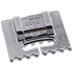 This Pintucking Foot is a twin-needle pintuck that helps create modern, heirloom-style projects. With this foot, the pintucks must be perfect, evenly spaced, and parallel rows. The Pintucking foot guarantees an ideal result for narrow and wide pintucks.
